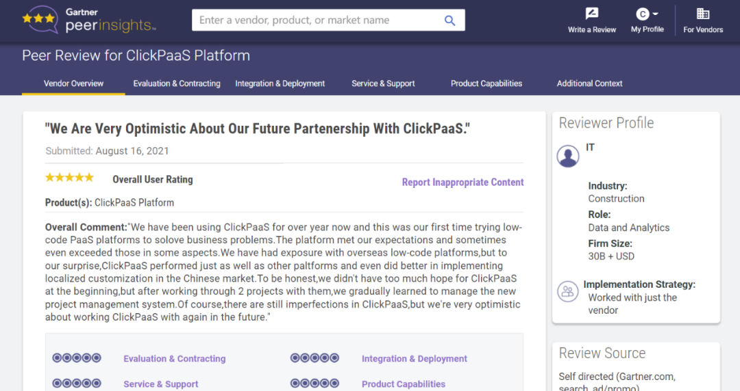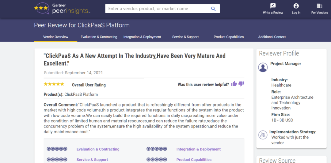 Tips:::【Peer Insights】——用户对企业IT产品和服务发布真实评价的平台。。目前已有355个市场,,,,255,000条经过验证的评价。。。每一条评价Gartner会针对参评企业营收规模及参评人员信息做验证、、评价内容做多维核实。。。