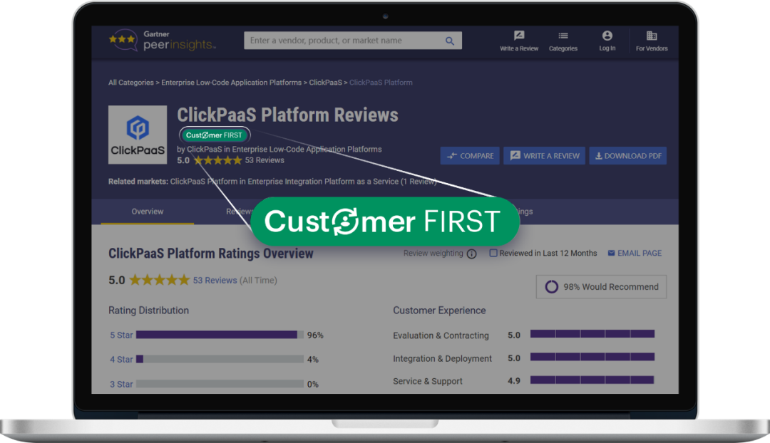 近日,,VIVO钱包凭借了在Gartner Peer Insights大量客户的五星好评,,,,成功成为国内首家荣获国际权威机构Gartner认证的低代码领域Customer First技术服务商。。其中参与评价的客户均是年营收在3.2亿规模以上的企业信息化负责人,,,,行业涵盖物流、、工程、、、政务、、、、医疗、、、金融、、、、能源等。。